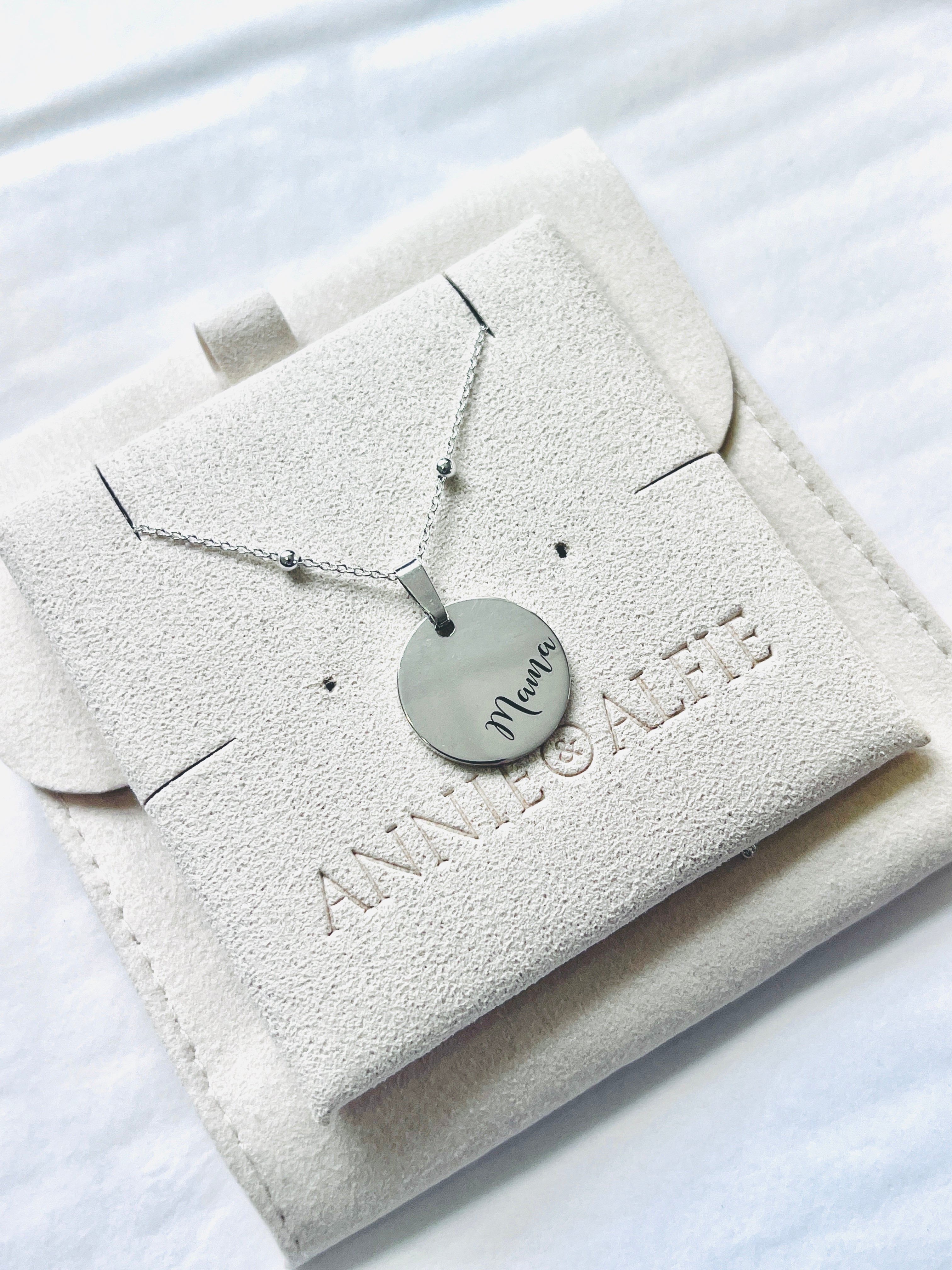 Handwritten Disc Pendant on Satellite Chain - 15mm