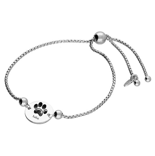 Pulsera con disco con huella de pata en plata de ley