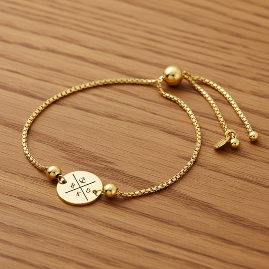 Pulsera de Disco con Ancla e Iniciales - disponible en Plata de Ley y Chapada en Oro