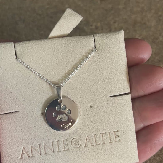 Nuestro collar con estampado de patas de plata de ley es más que una simple pieza de joyería: es un recuerdo preciado que rinde homenaje a las huellas que dejó su querida mascota en su corazón.