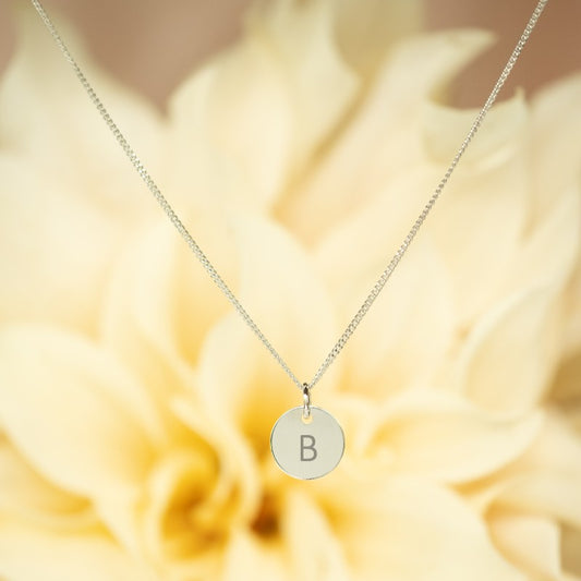 Colgante de disco con inicial pequeña en plata de ley - 10 mm