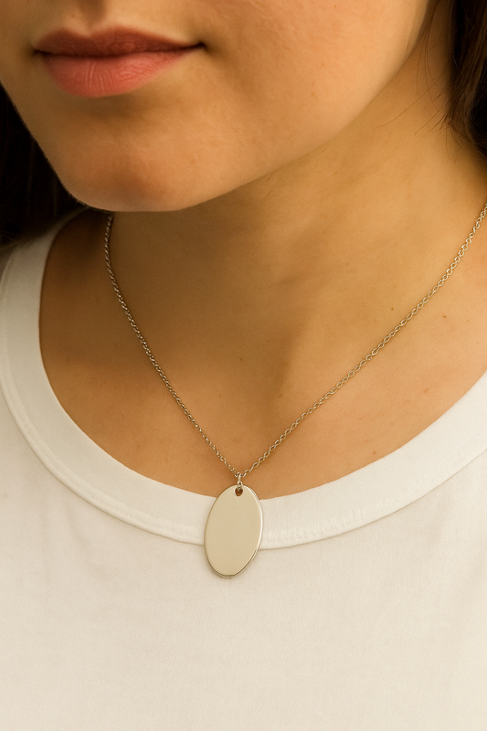Colgante de disco escrito a mano ovalado mediano - 19 mm x 12,5 mm